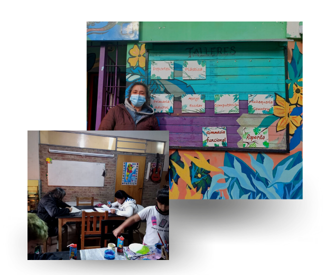 Así se comenzó a juntar ropa y la acondicionábamos después la venían a buscar para llevarla al barrio. También por el año 1994, 1995 comenzaron a ir chicas y chicos que participaban del movimiento, que querían ayudar a hacer la tarea a estos chicos del barrio, llevaban para compartir la merienda y hacer jugar con ellos un rato, todo esto lo hacían en la calle que era de tierra ya que no había lugar físico donde estén.